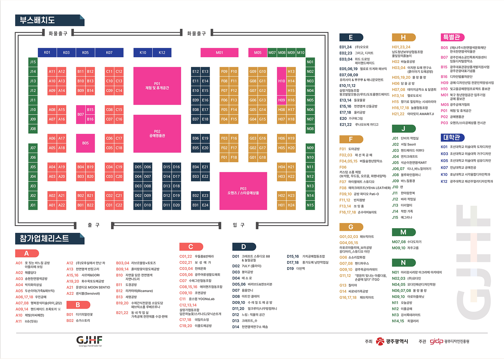 상설전시 우수공예품전시관, 공예명품관, 광주광역시 자치구 홍보관, 일반공방관, GIDP 사업홍보관, 대학관, 특별관 등