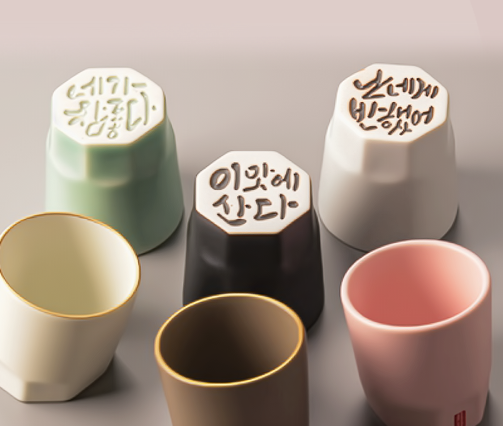 음각조각을 표면에 새겨 만든 세상에서 하나밖에 없는 컵에 복을 기원하는 한국인의 전통문화를 접목함으로 이는 유니크함을 더욱 강조하고자 함입니다.