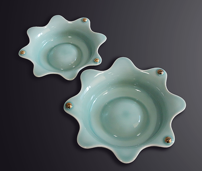 방울이 튀어 오르는 모습으로 시각적인 자극을 주며, 가운데가 불록하여 일반 그릇의 음식 양보다 적은 양을 담을 수 있습니다.